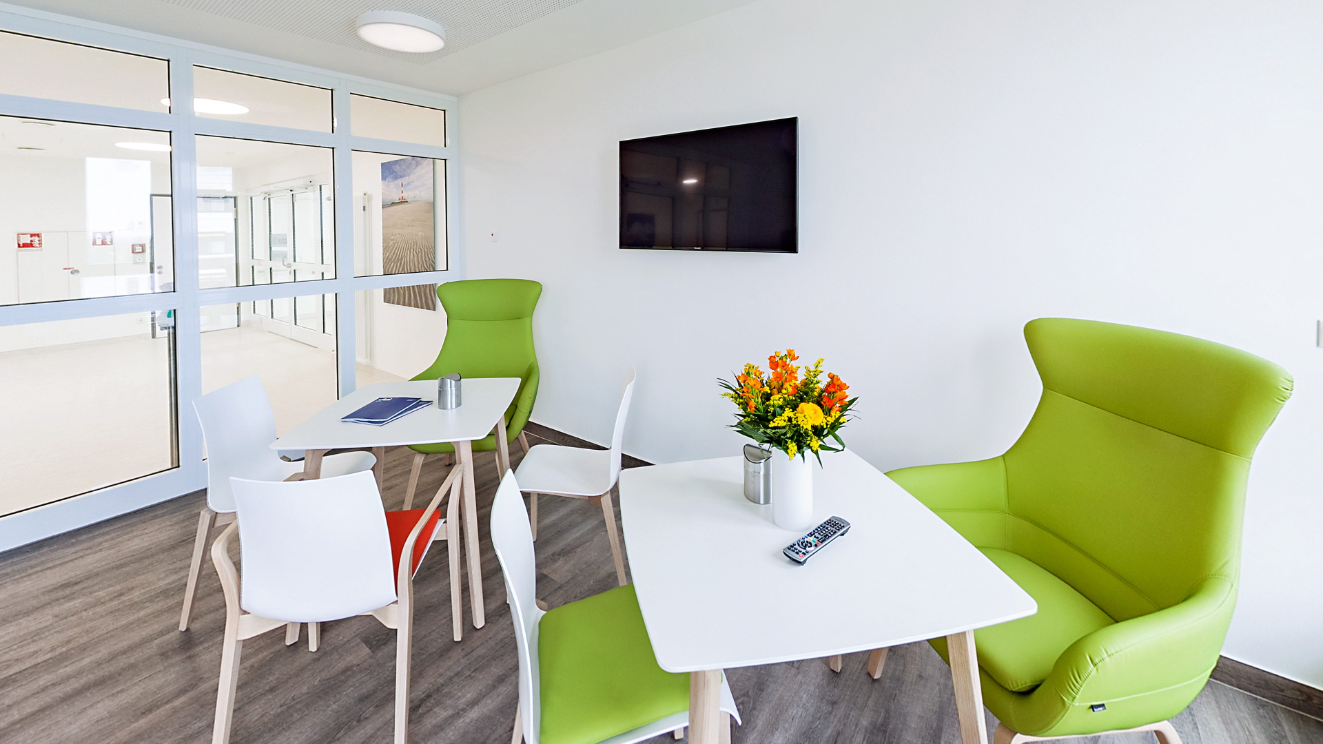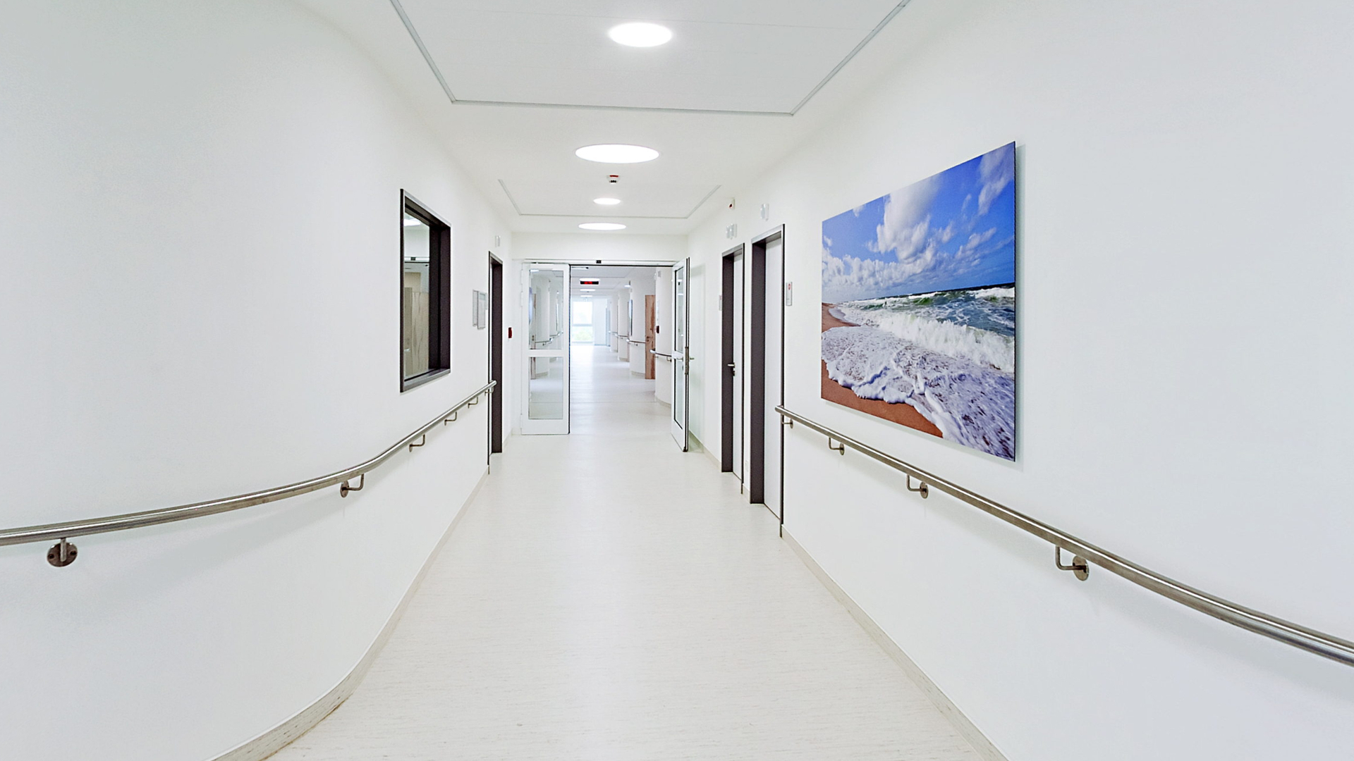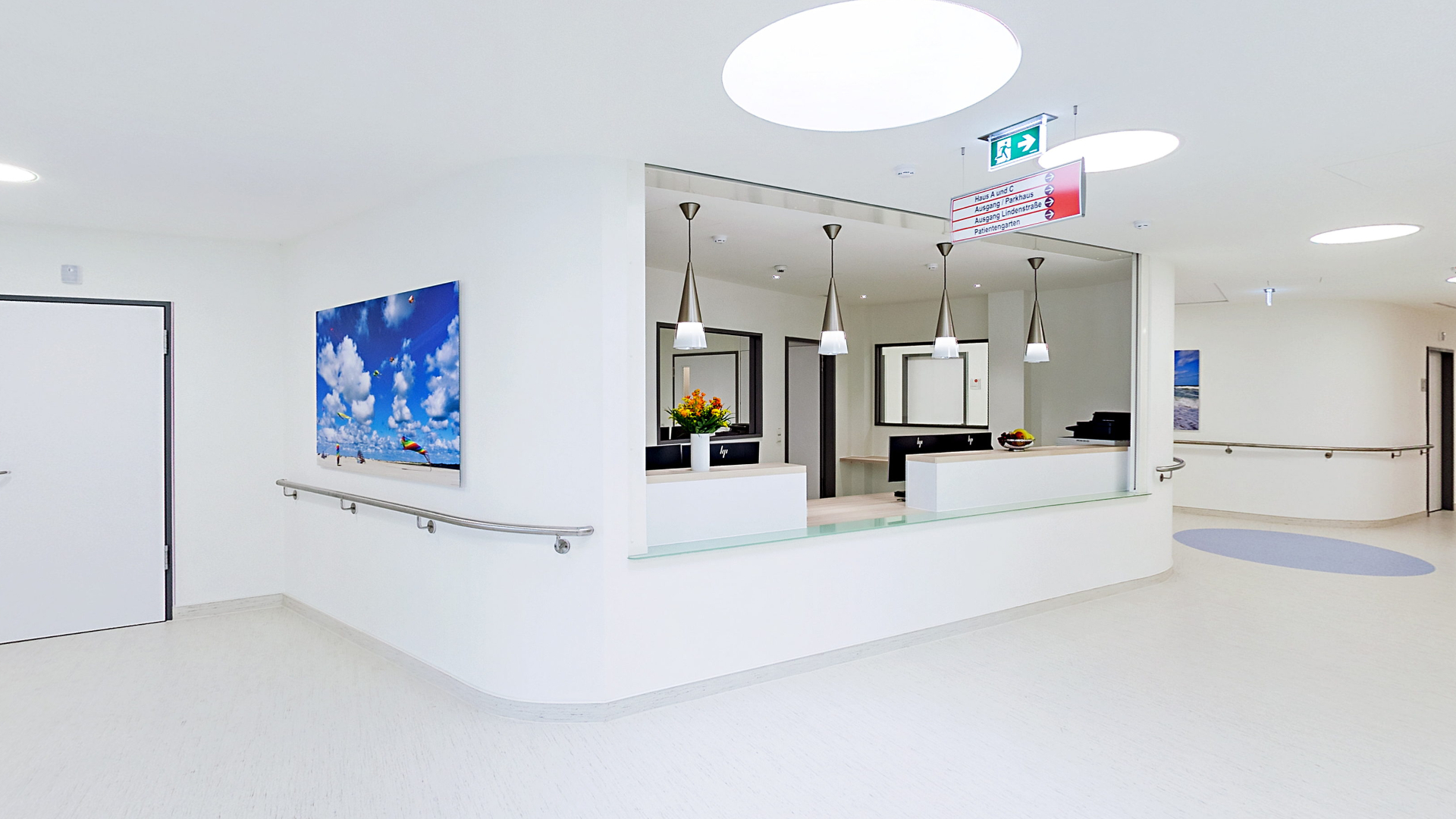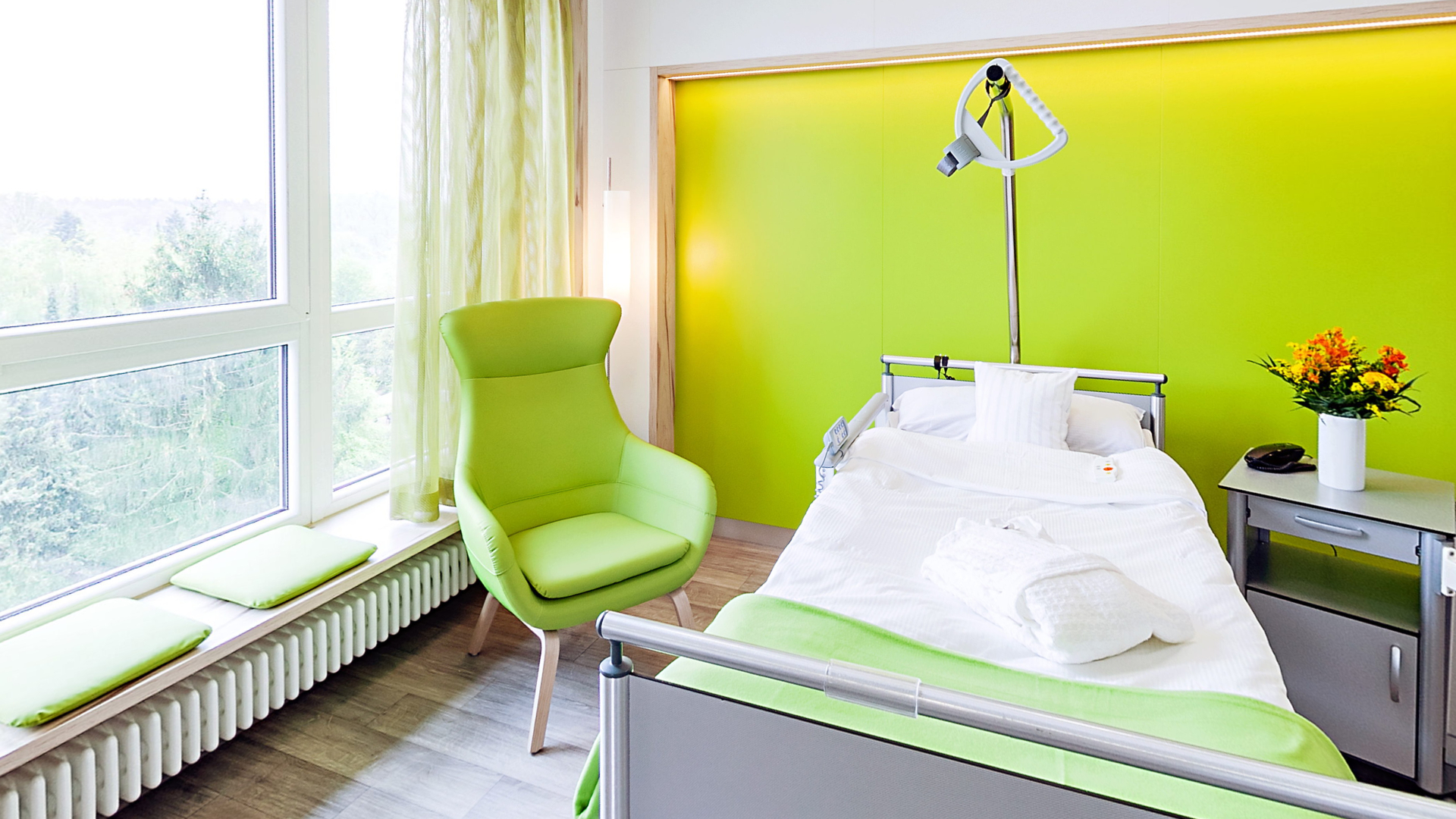 Im obersten Stockwerk des Hauses B finden Sie unsere Komfortstation mit ihren 27 Zimmern in frischen Farben und mit eigener Lounge. Ein kompetentes Serviceteam sorgt zusammen mit den Pflegefachkräften und Ärzt:innen für Ihr Wohlbefinden.