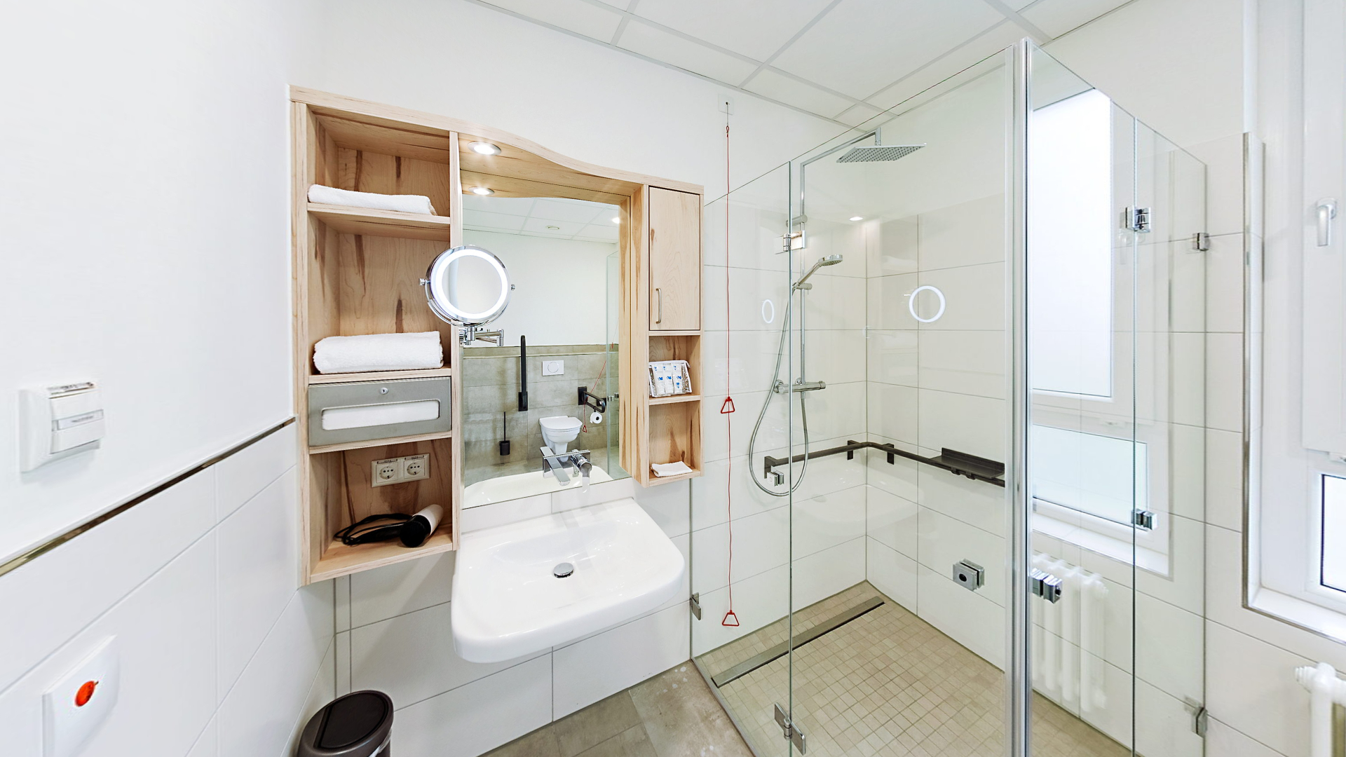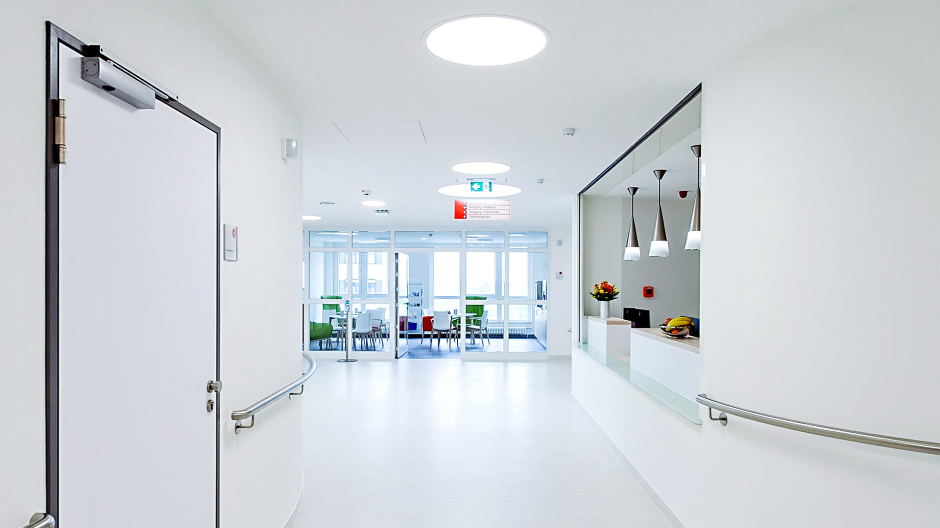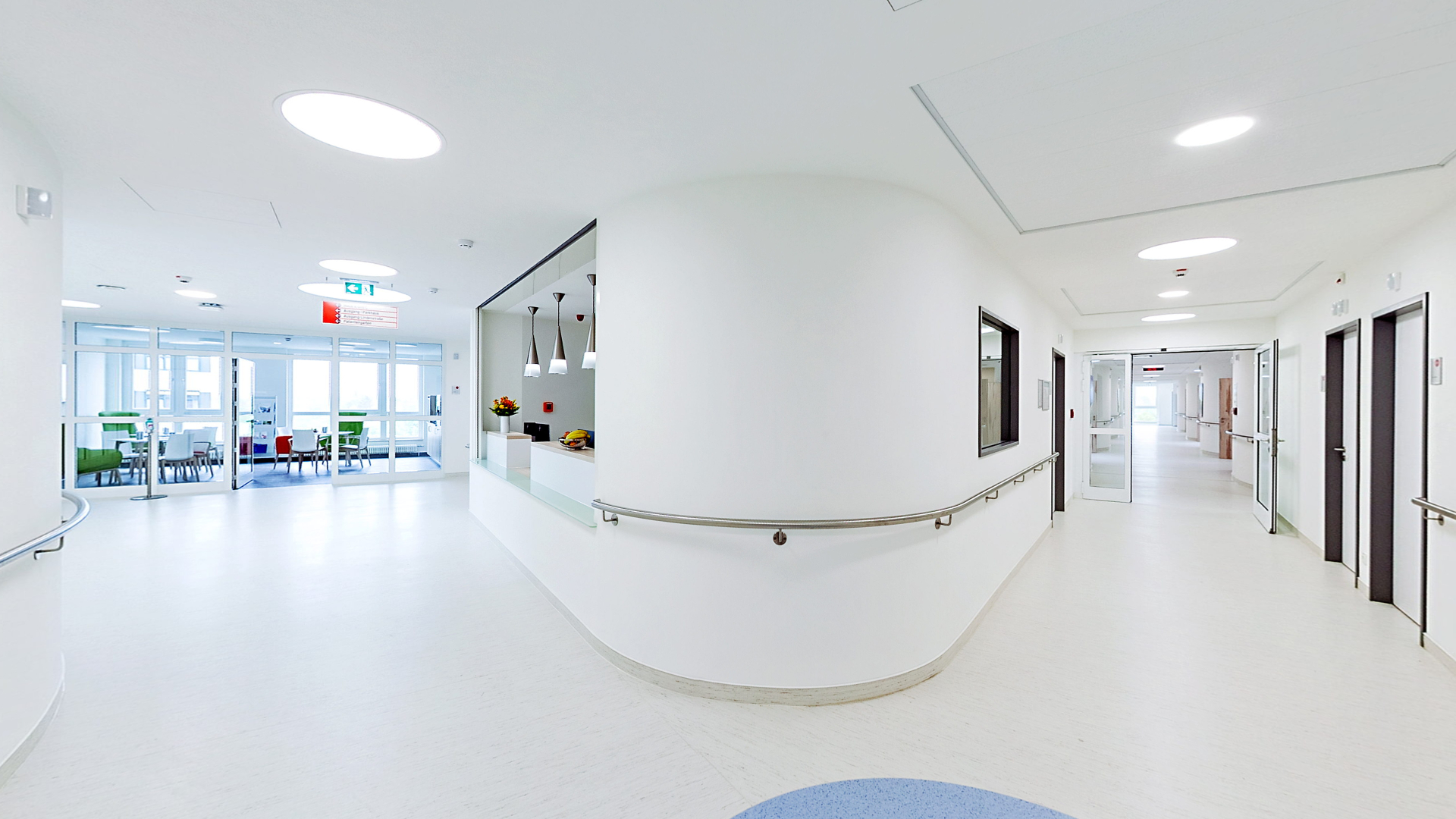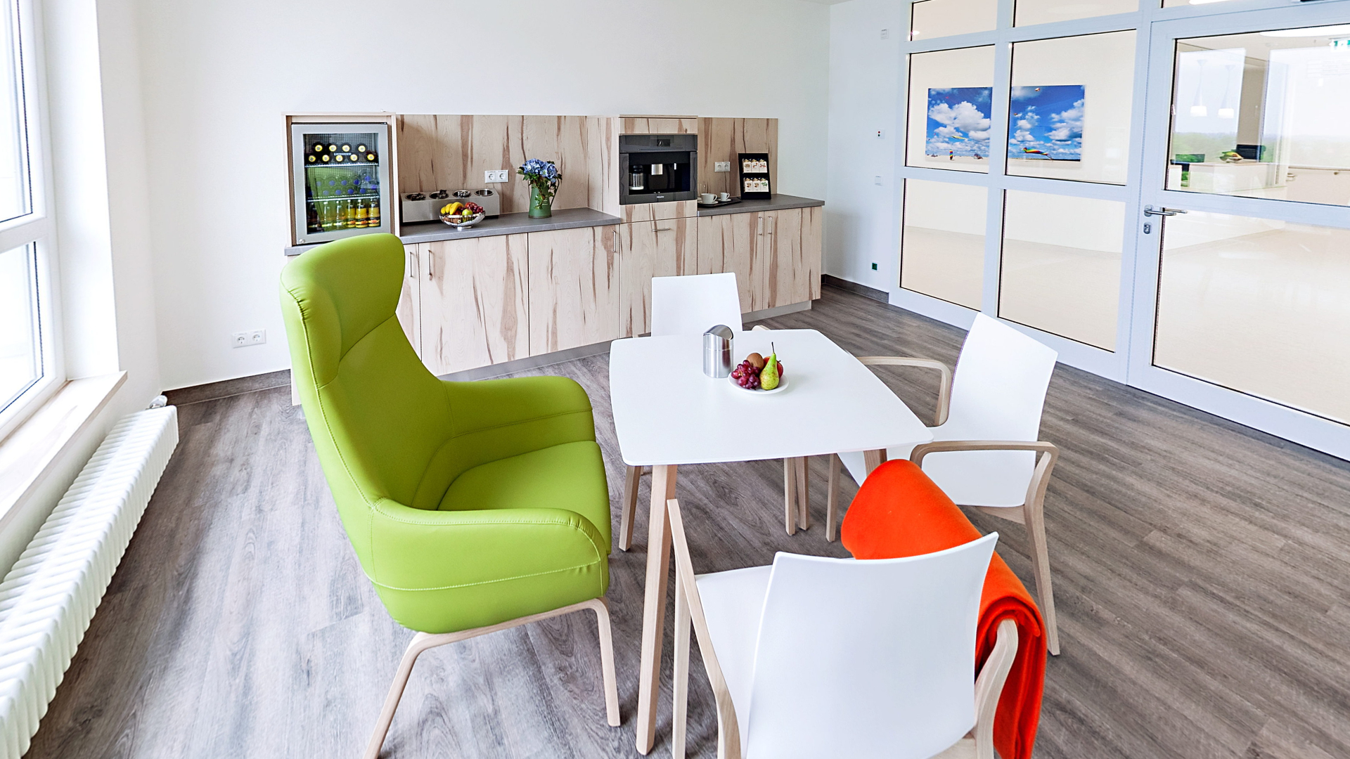 Im obersten Stockwerk des Hauses B finden Sie unsere Komfortstation mit ihren 27 Zimmern in frischen Farben und mit eigener Lounge. Ein kompetentes Serviceteam sorgt zusammen mit den Pflegefachkräften und Ärzt:innen für Ihr Wohlbefinden.